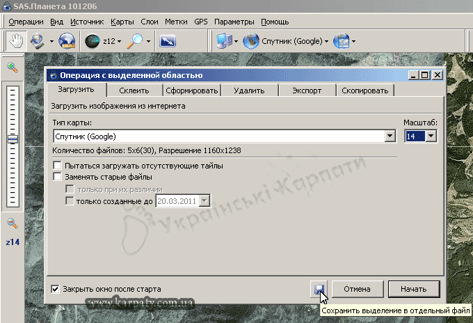тайли зображення для майбутньої мапи в необхідних зумах та з потрібних