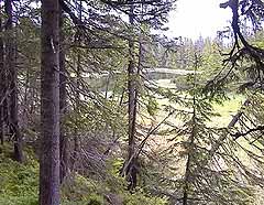 просто і вниз до озера. Таборимося просто коло плеса, тут уже стоять люди.