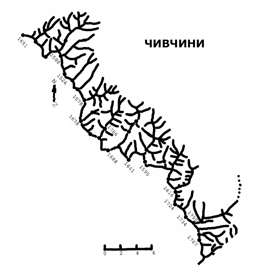 ЧИВЧИНСЬКІ ГОРИ (Чивчини) Коротка довідка. Гірське пасмо Українських Карпат у межах Івано-Франківської і частково Чернівецької областей. Є пн.сх. продовженням Мармароського масиву. Абсолютна висота до 1769 м (г. Чивчин). Складаються з кристалічних сланців, гнейсу, мармуру тощо. Переважають скелясті, трапляються льодовикові форми рельєфу. Пн. схили гір розчленовані долинами приток Білого Черемошу і Чорного Черемошу. Тут є майже незаймані ліси (до 1300 м - букові, до 1500 м - ялинові), добре зберігся пояс чагарникового криволісся, менше виражені субальпійські луки. Слабо заселені. Географічна енциклопедія України Чивчини в деталях. Геологічно - Чивчини є частиною Мармароського масиву. Рельєф Чивчин - показово полонинський. Орографічними межами Чивчинських гір є потоки Шибений, Чорний Черемош, витоки Перкалабу - з півночі та сходу, долини потоків Соколова (Соколау), Вазер, Новелу, Цисла і її витоки - Белесина - з заходу і півдня. Слід зазначити, що поділ на Мармароські Альпи та Чивчинські гори стосується української частини Мармароського масиву. Румунські джерела розглядають цей район сукупно, як гори Марамуреш. Орографічно Чивчини нагадують гребінь, основою якого є лінія головного хребта, а зубцями - бічні відроги, які спускаються до Чорного Черемоша. Головний Чивчинський хребет, який, одночасно, є частиною головного вододілу, починається від г.Стог 1651 м, і простягається до г.Крецела (Занога) 1853 м (гора - повністю на території Румунії), відповідаючи загальному напрямку з північного заходу на південний схід. Лінія хребта фіксується вершинами Копілаш, Керничий 1589, Фуратик 1526, Боршутин 1547, Ледескул 1579, Боршутин 1573, В.Будичевська 1678, Кукулик 1581, Чивчинаж 1585, Сулігул 1688, Попадя 1526, Рижоватий (Лустон) 1641, Лостунь Малий 1595, Пірія 1550, Пурул 1617, Штевьора 1617, Коман 1724, Команова 1734, Палениця 1750, Гнітеса 1767. Протяжність головного Чивчинського хребта від Стогу до Крецели - 67 км (в межах України - 62 км). Від головного хребта відходять численні короткі відроги в північному та північно-східному напрямках: Регєска Велика (між долинами Шибеного і Регєщика), хребет Руський Діл (між долинами Рагєщика і В.Керничого), відроги Керничого (між потоками Керничим і Рабинцем), відріг Боршутина (між зворами Рабинця та Прелучного), хребет Прелучний (між зворами Прелучного та Старостаєнського), хребет Добринь (між Старостаєнським потоком і потоком Добринь), відріг В.Будичевської - Чурюс (в витоках потоку Добринь), хребет Чивчин (між зворами Добриня і Альбіна), хребет Альбін (між потоками Альбін та Попадинець), хребет Лостунь (між зворами Попадинця і Лостуня), хребет Баласинів в верхів"ях Лостуня, хребет Ротундул. Від Палениці відходить хребет, який сполучає Чивчини з Гринявськими горами. В південно-західному та західному напрямках (територія Румунії) від головного хребта відходять протяжні відгалуження: хребет Рекіта (між долинами Соколау і Ріки, відріг Будеску (між потоками Дела-Будеску і Будеску), хребет Будичевського Петрова з відрогами Лутяса, Печал і Бейца (між долинами Лутяси, Ріки і Вазеру), хребет Торояги з відгалуженнями (між долинами Вазеру і Цісли). Традиційно так склалось, що румунські відроги до власне Чивчин - не відносять. Для Чивчинського хребта характерним є наявність субальпійського поясу полонин, протяжність яких - дуже велика і в Українських Карпатах поступається ли